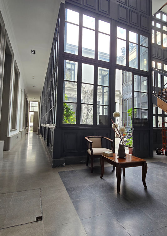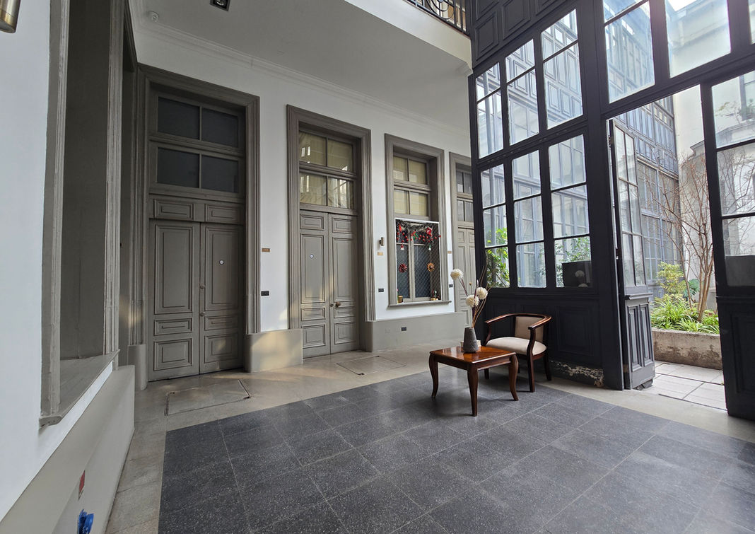 Las instalaciones de la Casona Harrington ofrece rico patio interior vidriado que inunda de luz los espacios comunes. Además, el edificio dispone de bicicletero, lavandería y un salón multiuso, añadiendo comodidad y versatilidad.